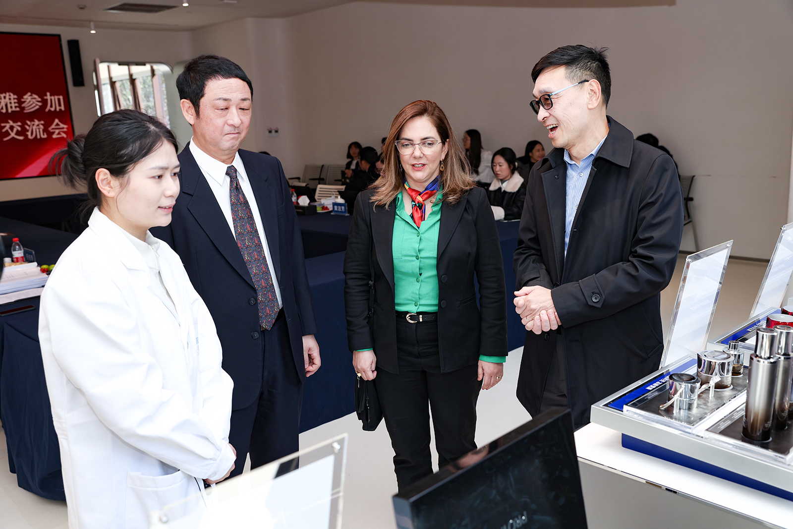 与会专家了解珀莱雅科学技术成果及应用